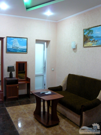 Ужасное место!!!!! Никогда сюда не приезжайте!!! Отдыхали с мужем в этом кошмаре с 15 по 23 июля. Бронировали номер стандарт в конце мая - в итоге приехали нам предложили люкс, видите ли остальное занято. В так называемом люксе - вода, что холоная, что горячая ЕЛЕ ТЕКЛА И ЭТО ЛЮКС!!! Спутниковое ТВ состоялj из 9 каналов, что там нечего и смотреть было. Питание ужасное - такой порцией можно воробья только накормить. Никаких тебе овощей - хотя на рынке они там копейки стоят..Фруктов тем более не было. Персоналу только и надо сказать спасибо - это бедная молодежь старается как может, а этот хозяин -Серега-настоящий бандюган, его админ Маша - полнейшая хамка..людей дурит с курсом гривны, при чем по-черному. Хорошо, что мы приехали с гривнами. Теперь про пляж - он один единственный на всю деревню- до него от пансионата топать минут 20 не меньше..море всегда грязное, а ветра нет только с утра - после обеда бесполезно ходить купаться - волны атас и ветрина сдувает. До пляжа крутой спуск - так что каждый раз зарядка - туда и обратно пока сходишь.. Все положительные отзывы, походу эта Маня сама и пишет. Съездив к ним в "чудо" пансионат - потрепете себе нервы и потратите зря свои деньги. Кидают они всех подряд!!! Ужасный пансионат!!!