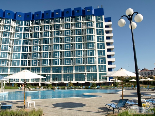 Проживание и обслуживание в комплексе с апартаментами обеспечивается в соответствии с международной классификацией по четырехзвездночной категории. Курортный комплекс обладает мощной инфраструктурой, но самое главное, что делает «Аквамарин» настоящим шедевром – это крупнейший в Украине открытый аквапарк «Зурбаган», который является частью комплекса и дарит отдыхающим море позитива!