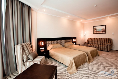 - Superior Twin - 36 однокомнатных 2-х местных номеров площадью 42 кв. м с двумя отдельными кроватями, с видом на море или город.