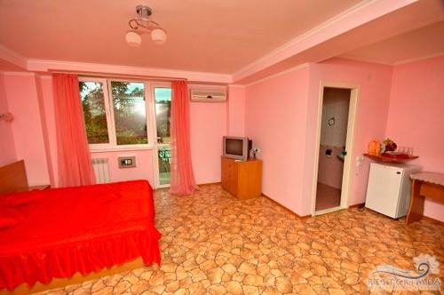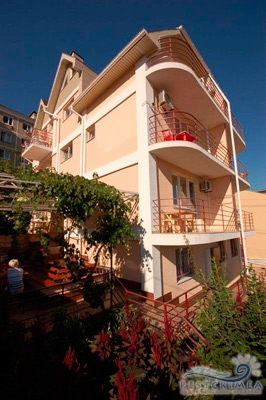 Отдыхающие мини-отеля размещаются в 12-ти 2-х местных номерах и в номере «Апартаменты». Номера выполнены в разнообразном стиле: первый этаж – желтый, второй этаж – розовый, третий этаж – голубой. Все номера с балконами. Возможно размещение как 2-х, так и 4-х человек.