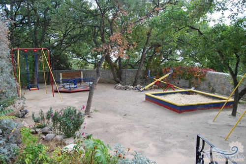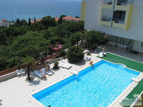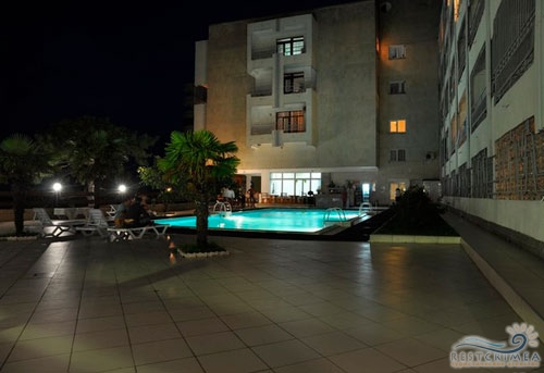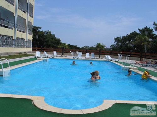 Бассейн площадью 8×15 м.кв. расположен во внутреннем дворике корпуса пансионата. Бассейн открытый, оборудован системой очистки и гидромассажа (без подогрева). Бассейн окружен специальным мягким покрытием. Пользование бассейном входит в стоимость размещения. На территории бассейна находится душевая и туалет.
