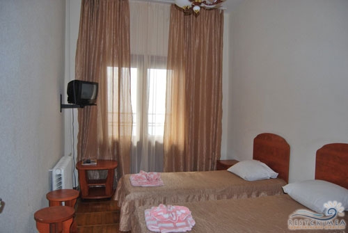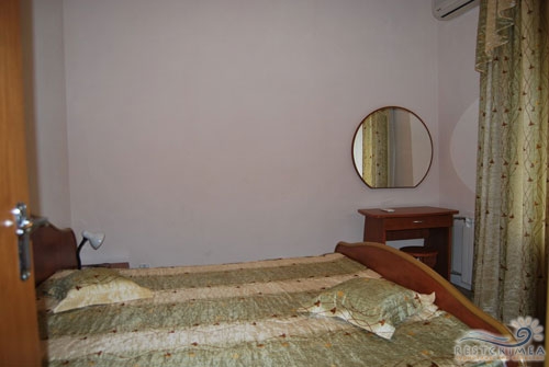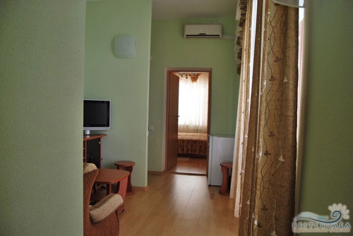 - Апартаменты: 3-х комнатный номер с совмещенным санузлом (душ, туалет, умывальник) и мини-кухней. Евроремонт, новая мебель. Две спальни: двуспальная кровать, встроенный шкаф, зеркало; гостиная: мягкий уголок, журнальный столик, трюмо. ТВ, холодильник, бойлер, кондиционер, мини-бар. Три балкона (на одном: столик, два стула).