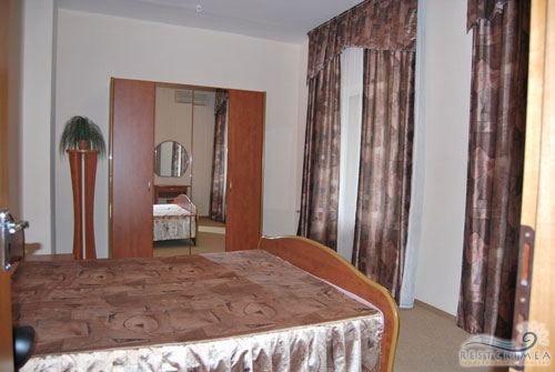 - 2-х местные номера "люкс": 2-х комнатный номер с совмещенным санузлом (душ, туалет, умывальник) и мини-кухней. Евроремонт, новая мебель. Спальня: двуспальная кровать, встроенный шкаф, зеркало; гостиная: мягкий уголок, журнальный столик, трюмо. ТВ, холодильник, бойлер, кондиционер, мини-бар. Два балкона (на одном: столик, два стула).