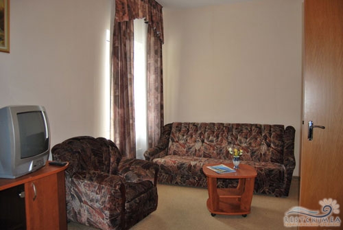 - 2-х местные номера категории "полулюкс". 2-х комнатный номер с совмещенным санузлом (душ, туалет, умывальник). Евроремонт, новая мебель. Спальня: двуспальная кровать, встроенный шкаф, зеркало; гостиная: мягкий уголок, журнальный столик, трюмо. ТВ, холодильник, бойлер, кондиционер, мини-бар. Балкон: столик, два стула.