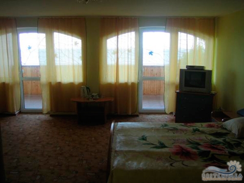 Люкс 1-комнатный, 2-х местный: однокомнатный номер со всеми удобствами, с кондиционером, двуспальная кровать и раскладной диван, балкон, вид на море. В номере есть эл. чайник, холодильник, телевизор, кондиционер, бойлер.