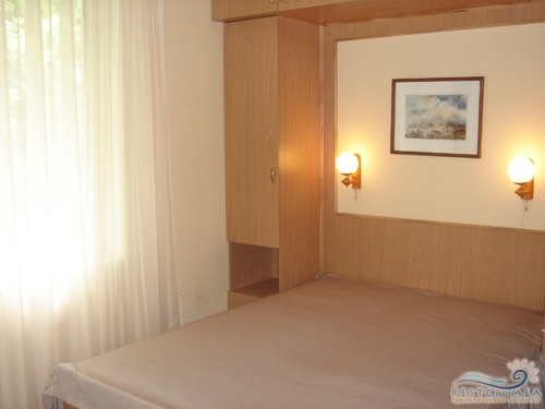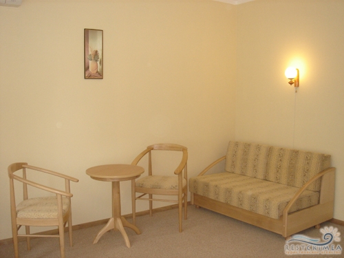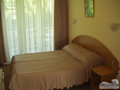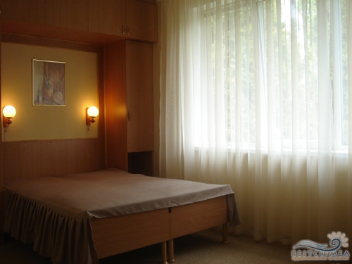- Корпус №1 (2 этажа) 2-х местный номер стандарт с кондиционером (2-й этаж). В номере: двуспальная кровать (в номере нет доп. места), евроремонт, санузел (туалет, умывальник, душ), бойлер, телевизор, холодильник, балкон, кондиционер