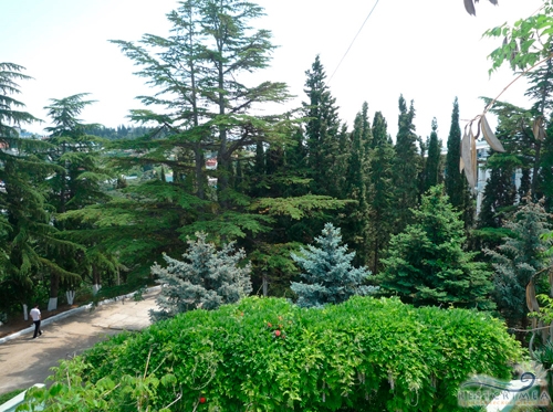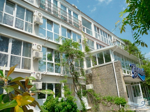 В центре курортного поселка Рыбачье, в 400 метрах от пляжа, окруженный небольшим парком с субтропической растительностью (пальмы, кипарисы и т.д.) находится пансионат Волна
