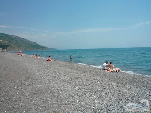 В 400 метрах от пансионата, поселковый широкий мелкогалечный, протяженностью 150 местров