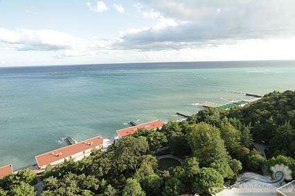 Санаторий приютился в живописном уголке Южного берега Крыма, между Гурзуфом и Никитским ботаническим садом, у подножия горной гряды на самом берегу Черного моря.