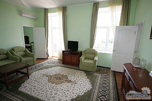 - 2-3-х комнатные номера категории "люкс": ТВ, холодильник, телефон, балконы. В 3-х комнатных люксах - два санузла, кондиционер, в 2-х комнатных люксах - один санузел.