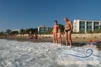 Собственный песчаный протяженностью 200 м., находится в непосредственной близости от корпусов санатория. Пляж оборудован теневыми нaвесами, игровыми площадками для детей. Прокат зонтиков, шезлонгов.