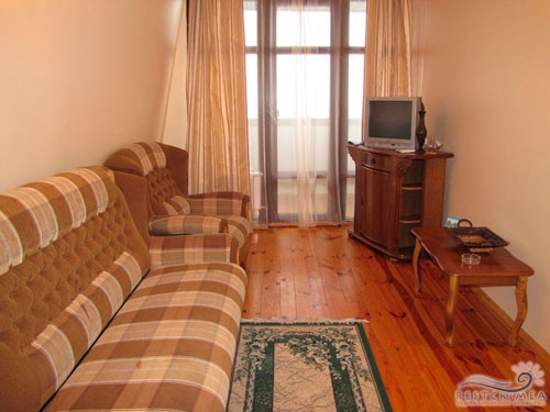 У номері: вітальня і спальня, розкладний диван, використовуваний як додаткове місце, санвузол (туалет, умивальник, душ), кондиціонер, холодильник, телевізор, балкон з набором пластикових меблів