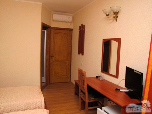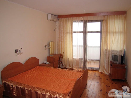 У номері: санвузол (туалет, умивальник, душ), кондиціонер, холодильник, телевізор, балкон з набором пластикових меблів.