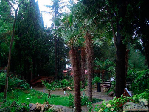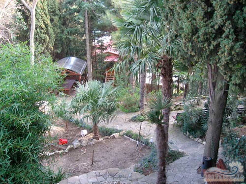 Власний парк з соснами, пальмами, кипарисами, юками, закритий від сторонніх очей, два декоративні басейни із золотими рибками, розарій і альпійська гора з кактусів. На території парку живуть білки.