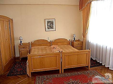 - 2-во кімнатний 2-во місний номер «люкс». Площа 113 кв.м. У номері: основний і гостьовий санвузли (умивальник, туалет), ванна кімната (ванна, душ, два умивальника, біде, кушетка); вітальня, спальня; м'яка і вбудовані меблі, телевізор, холодильник, телефон, кондиціонер; набір посуду, міні- сейф; лоджія.